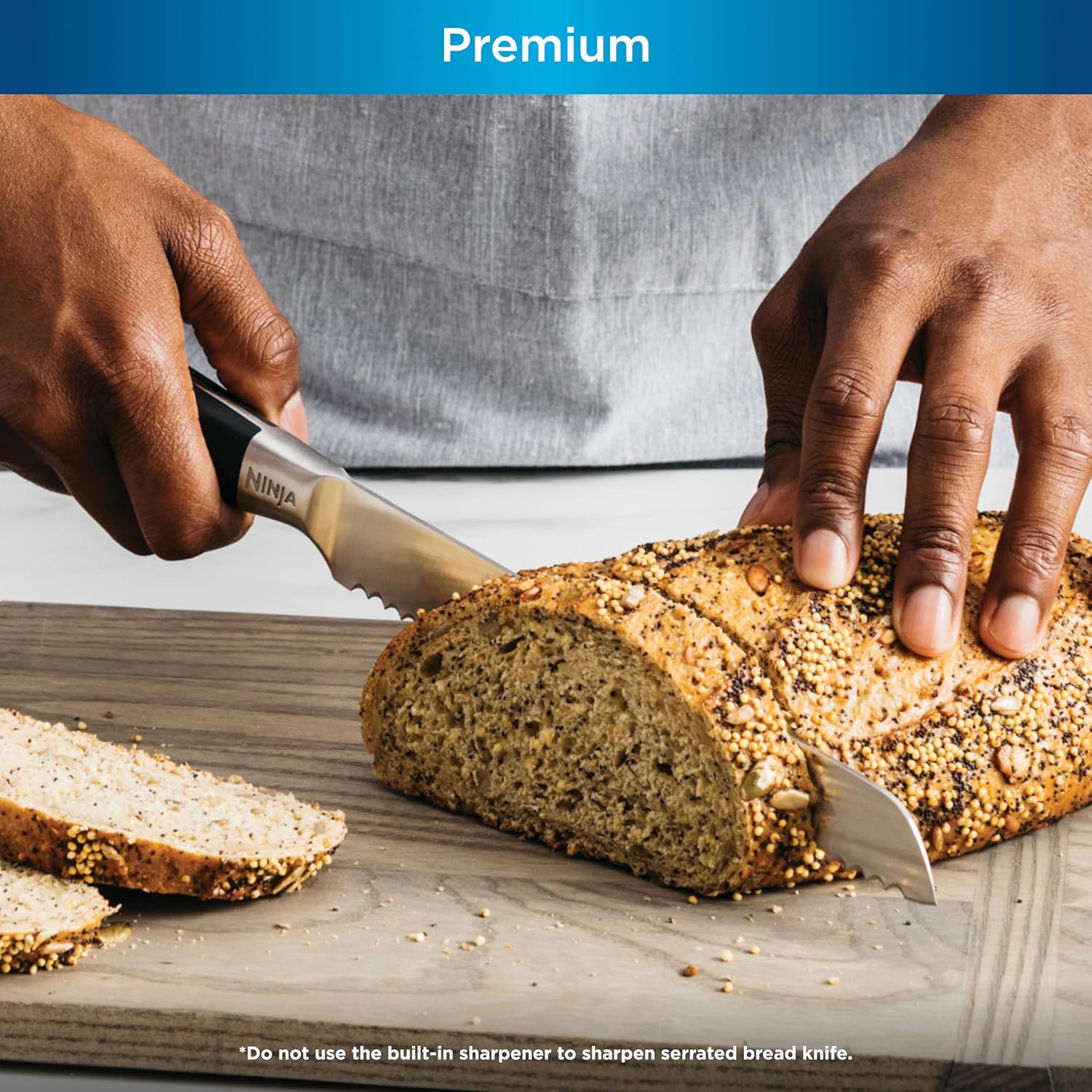 - EASY HOME SHARPENING: Easy, foolproof sharpening ensures you’ll never experience the frustration of a dull knife again. All you do is swipe the lever on the outside of the block.